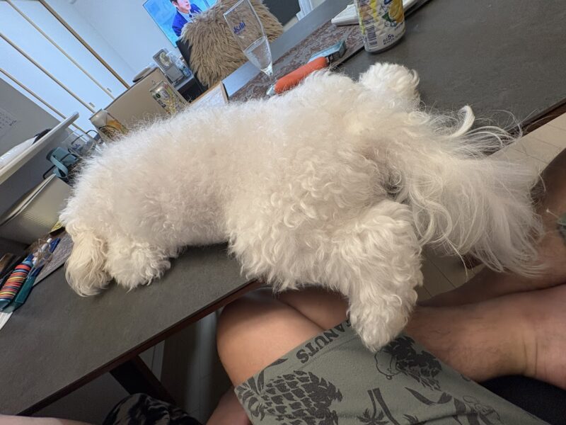 テーブルに乗ってはダメ!と叱ったら、左足だけ宙に浮かして、